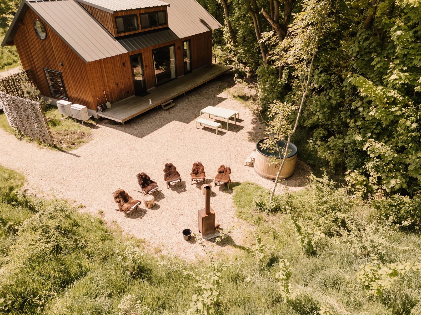 Beleef de ultieme winter: geniet van een warme duik in de hottub, rooster marshmallows boven het kampvuur onder een fonkelende sterrenhemel, neem ’s ochtends een plons in bad en start de dag ontspannen met een uitgebreid ontbijt aan de lange tafel.